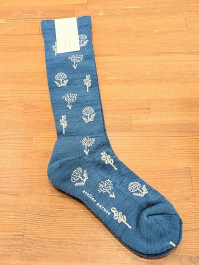 コットンウールモノトーンフラワー着圧ソックス